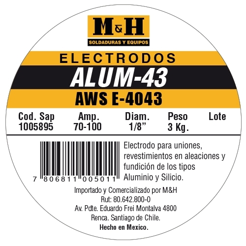 Electrodo cubierto para arco manual, cuya función es soldar diferentes grados (calidades) de aluminio.