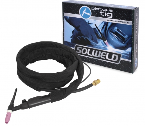 Esta pistola está diseñada para el uso en el proceso de soldadura TIG (Tungsten Inert Gas), se puede utilizar en distintos equipos de soldar, incluso en aquellos que no pueden realizar el control del paso del gas inerte a través de una válvula solenoide, ya que posee en el cuerpo de la pistola una válvula de gas que permite la apertura y cierre, optimizando el consumo del gas.