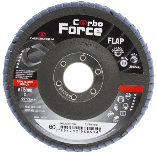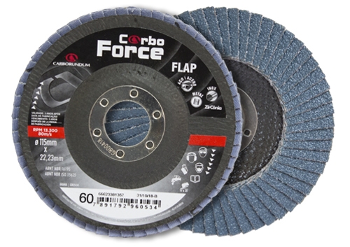 Características: La línea de discos traslapados CARBO FORCE de Carborundum posee respaldo de lija Drills/Algodón y granos de óxido de aluminio zirconado, son soporte plástico. Permite realizar desbastes y acabados en una sola operación sin la necesidad de cambiar de herramienta o de disco.