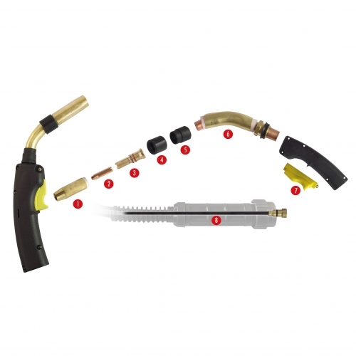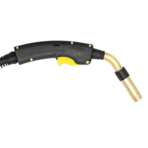 Pistola para Proceso de Soldadura MIG modelo B300-45 de 4,5 metros de largo, consiste en una manguera de gas interna recubierta por un espiral ligero de cobre, que permite el flujo de gas y alimentacion de alambre por su interior.